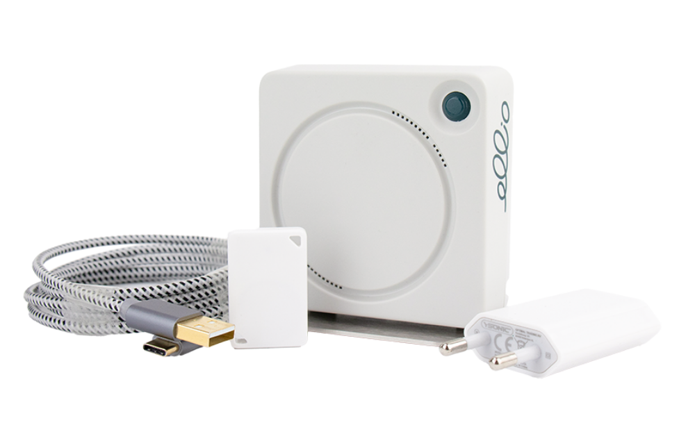 ellio zentral aufstellen (z. B. Flur vor Bad oder Küche) und einstecken.