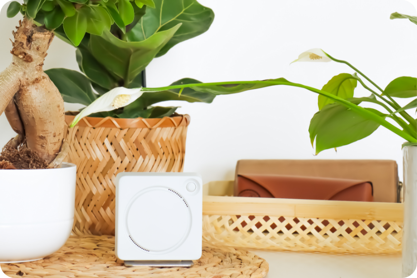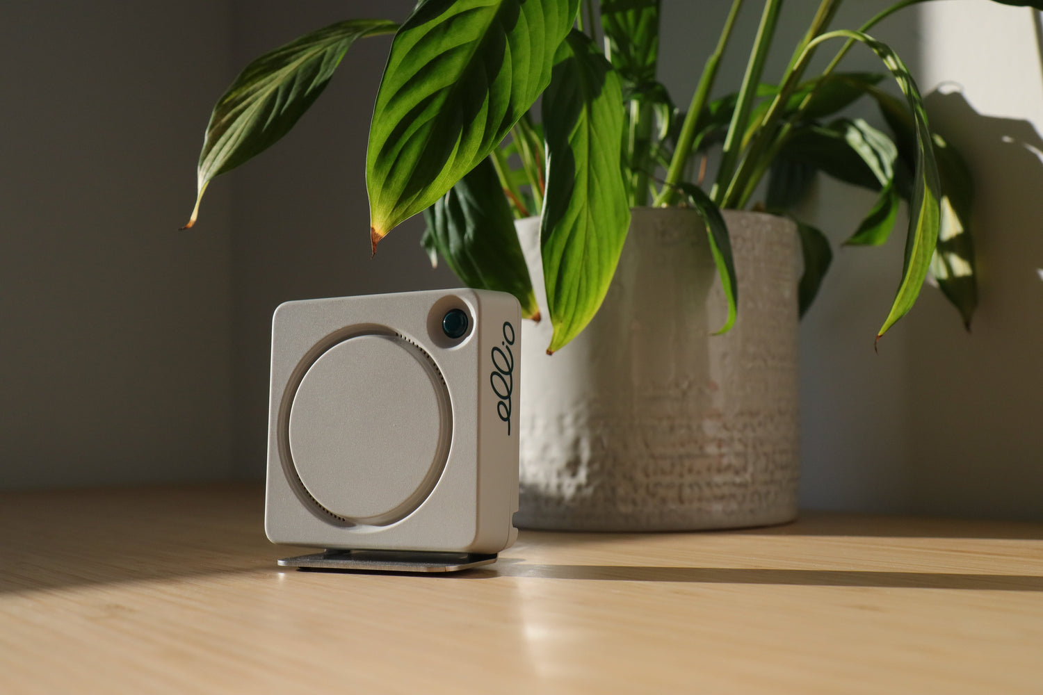 ellio lässt sich unaufdringlich platzieren – zum Beispiel auf einem Regal oder einer Kommode. So bleibt das Zuhause gewohnte Umgebung, während ellio im Hintergrund wachsam ist und Dich informiert, wenn etwas nicht stimmt.